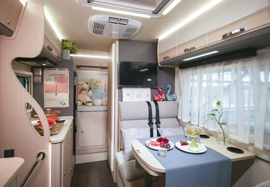與自行式A型房車相比,自行式C型房車空間稍顯不足,但又比自行式B型房車空間寬敞、設(shè)備齊全--起居室、廚房、盥洗室、臥室具有大量櫥柜,攜帶大量行李絲毫不成問題。同時(shí)車內(nèi)具有影音娛樂系統(tǒng)、空調(diào)、可轉(zhuǎn)化桌沙發(fā)椅等,總而言之,自行式C型房車是安裝在車輪上的空間緊湊、設(shè)備齊全的房車類型。